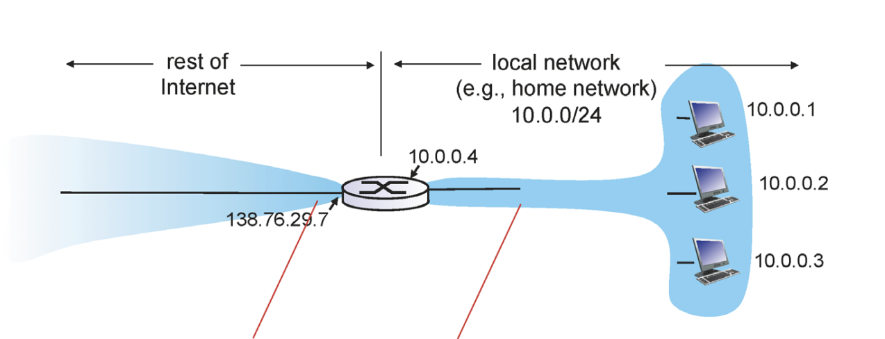 - 때문에 홈 라우터를 떠나 인터넷으로 가는 트래픽은 출발지 주소 IP 주소 138.76.29.7을 가지며 홈으로 들어오는 트래픽은 목적지 주소 138.76.29.7을 가져야 함.