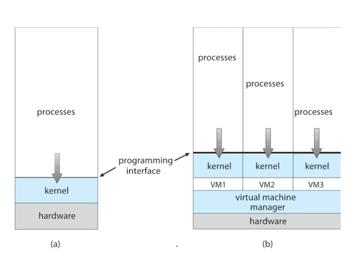 - 가상화에서는 측정 CPU를 위해 컴파일 된 운영체제가 동일 CPU용의 다른 운영체제 내에서 수행됨
