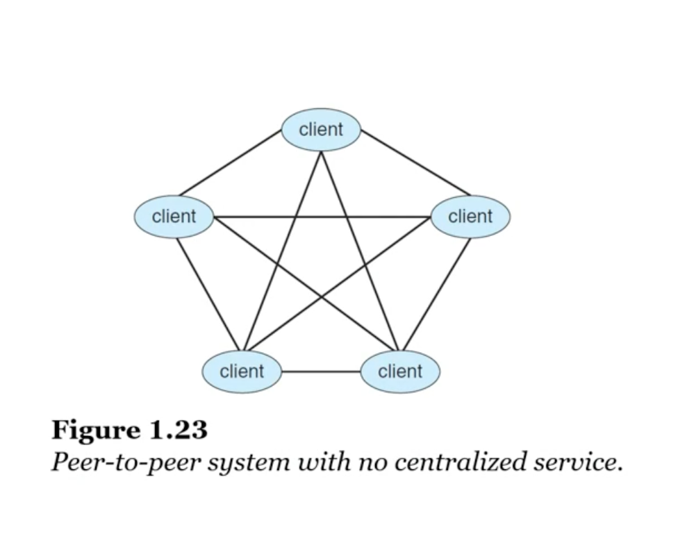 - 클라이언트와 서버가 서로 구별되지 않고 시스템 상의 모든 노드가 피어로 간주되고 각 피어는 서비스를 요청하느냐 제공하느냐에 따라 클라이언트 및 서버로 동작함