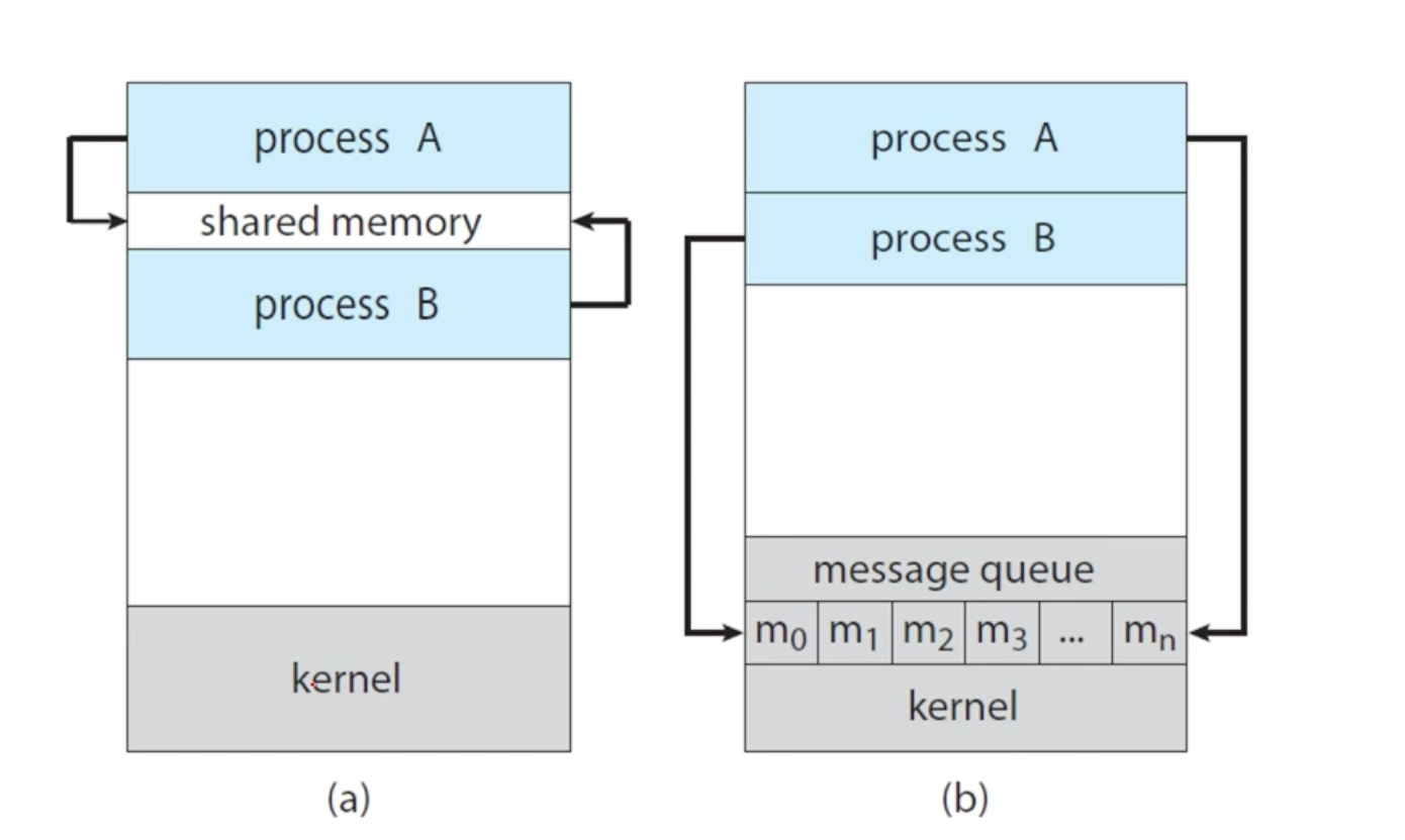 - 협력적 프로세스들은 데이터를 보내거나 받을 수 있는 프로세스 간 통신(Interprocess communication, IPC) 기법이 필요함