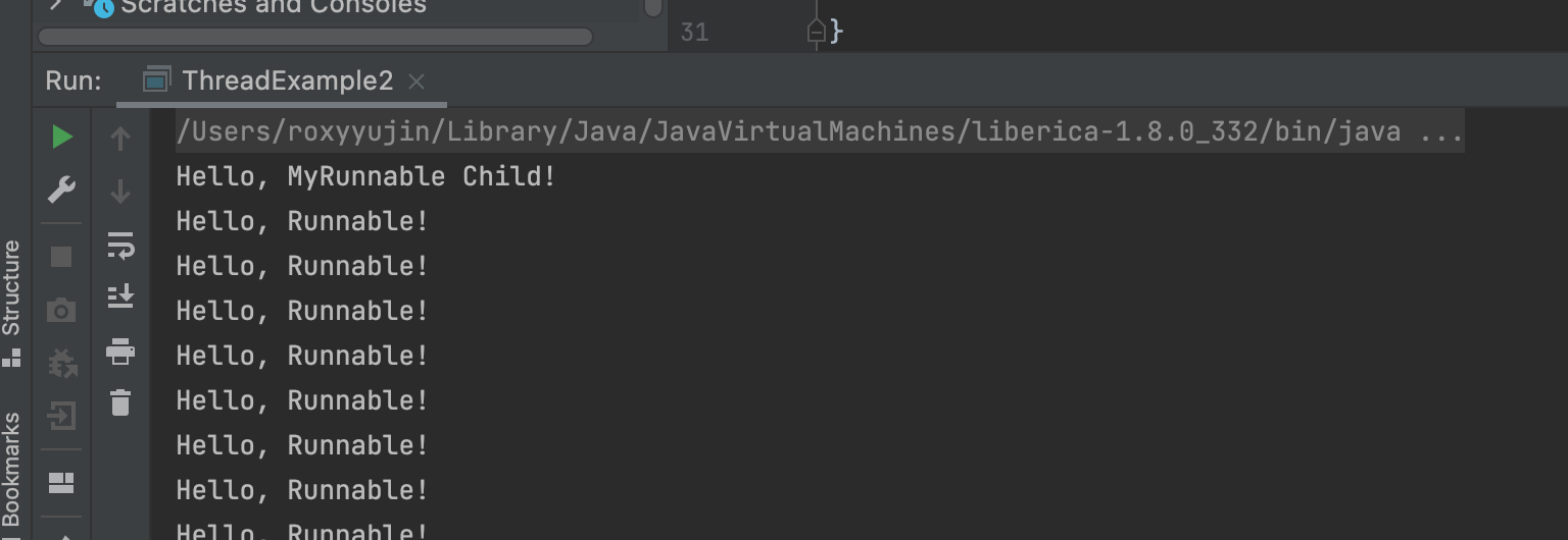 // Runnable 이라는 인터페이스에는 run() 메소드 하나밖에 없음