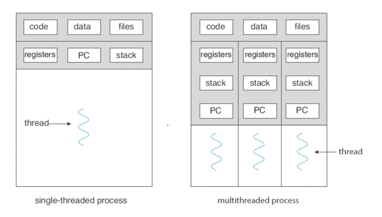 - 다중 처리기 구조에서 각각의 스레드가 다른 처리기에서 병렬로 수행될 수 있음