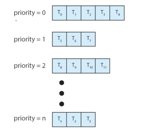 - 위 그림에서 각 큐는 다음과 같은 우선순위를 가짐