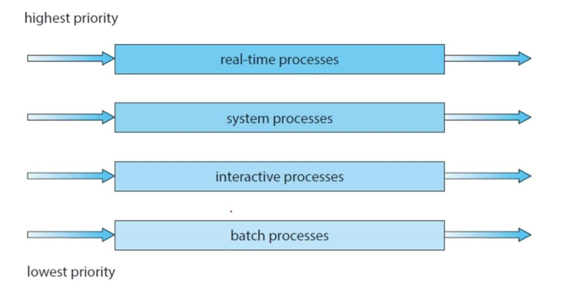 - 각 큐는 낮은 우선순위의 큐보다 절대적인 우선순위를 가짐