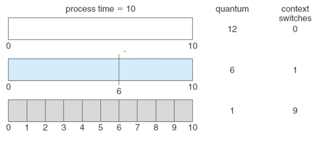 - 그러므로 타임 슬라이스의 크기는 context switch 시간에 비교해 커야함