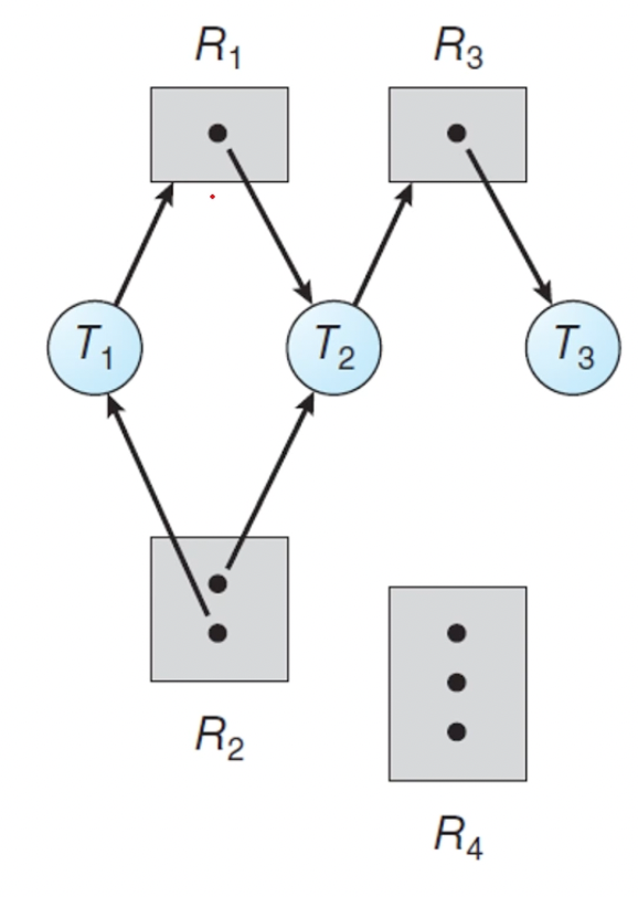 - 반면에 자원 할당 그래프에 사이클이 있다면 교착 상태 일수도 있고 아닐 수도 있음
