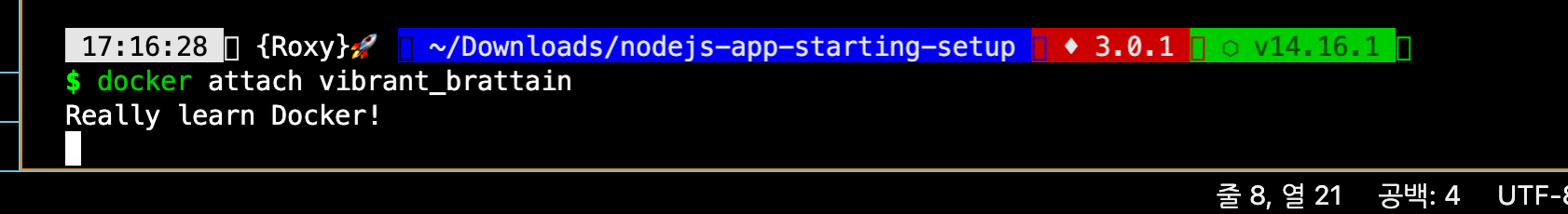 $ docker attached {컨테이너_이름/컨테이너_id}
