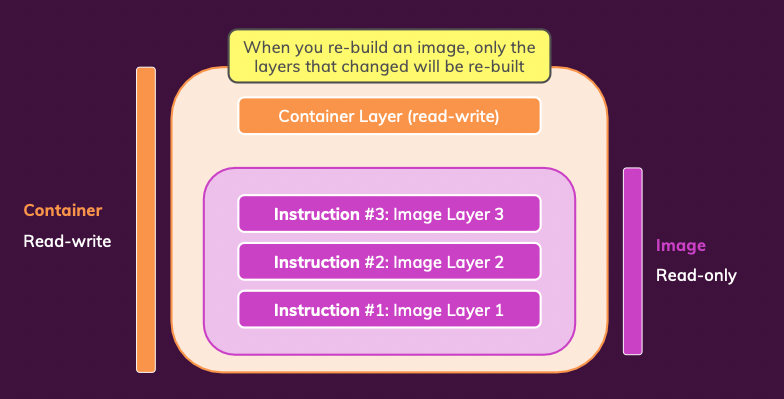 - 이미지는 읽기 전용이므로 소스 파일이 변경되면 도커 이미지를 새롭게 빌드해야 함