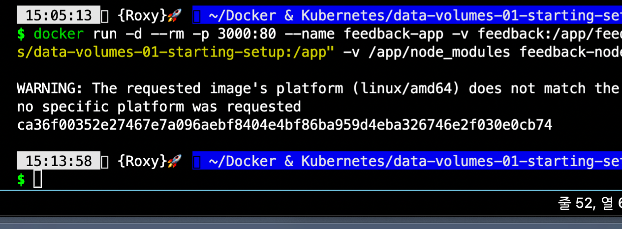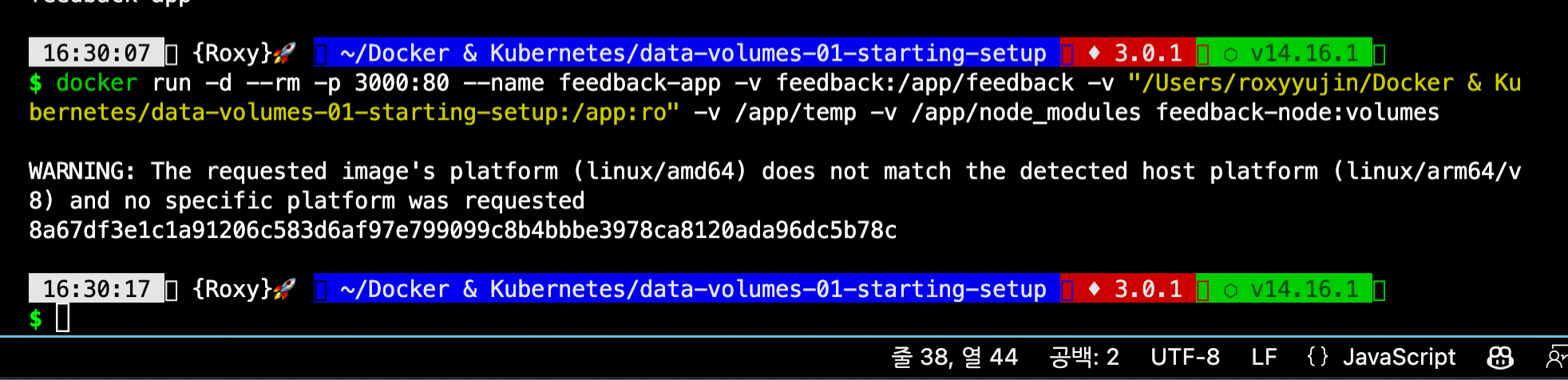- 따라서 -v /app/temp 옵션을 주어 app/feedback도 read&write로 설정해줌-v "/Users/roxyyujin/Docker & Kubernetes/data-volumes-01-starting-setup:/app:ro"