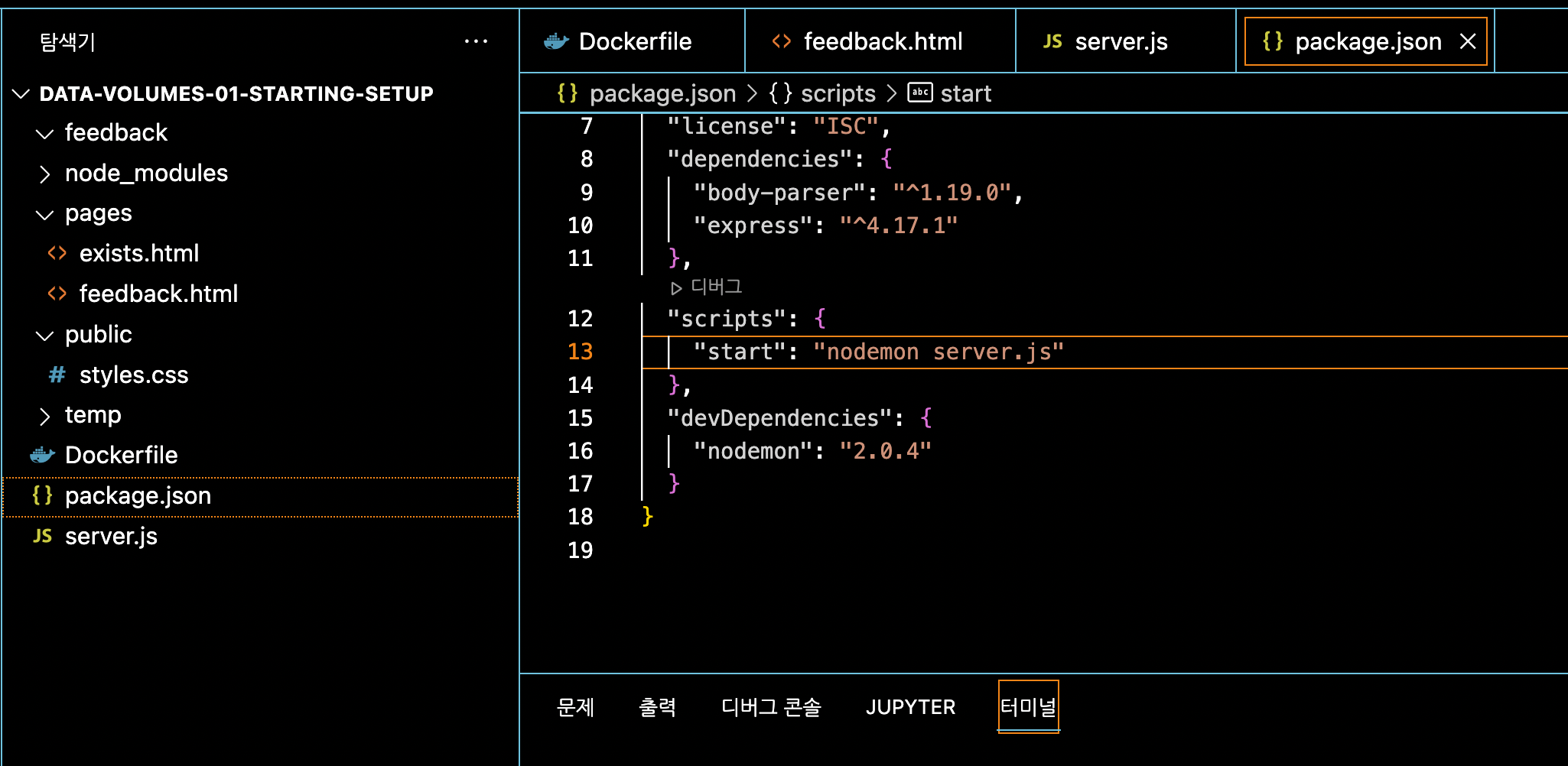 NodeJS 특화 조정: 컨테이너에서 Nodemon 사용하기