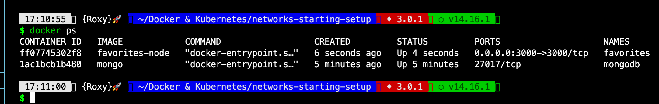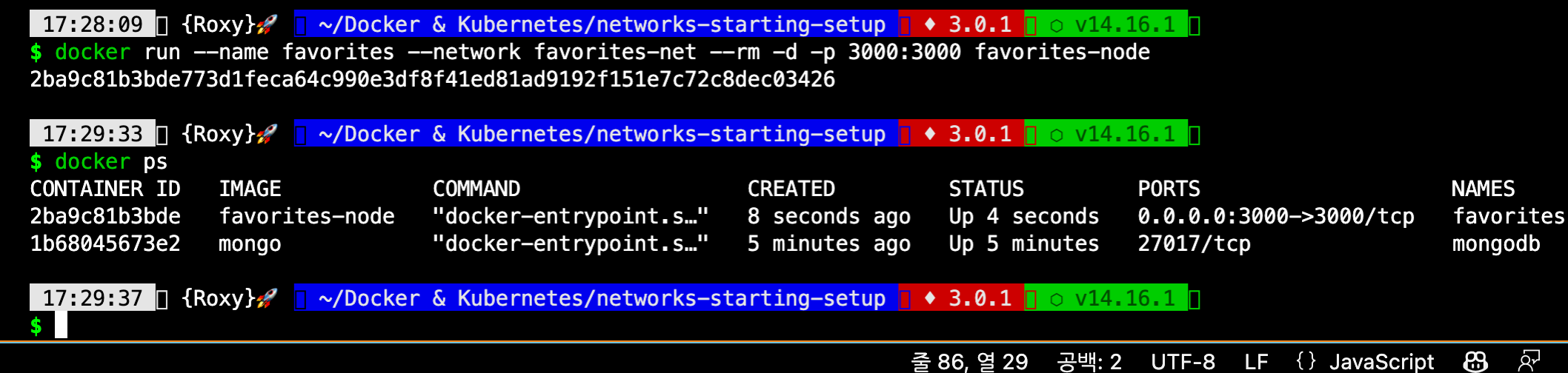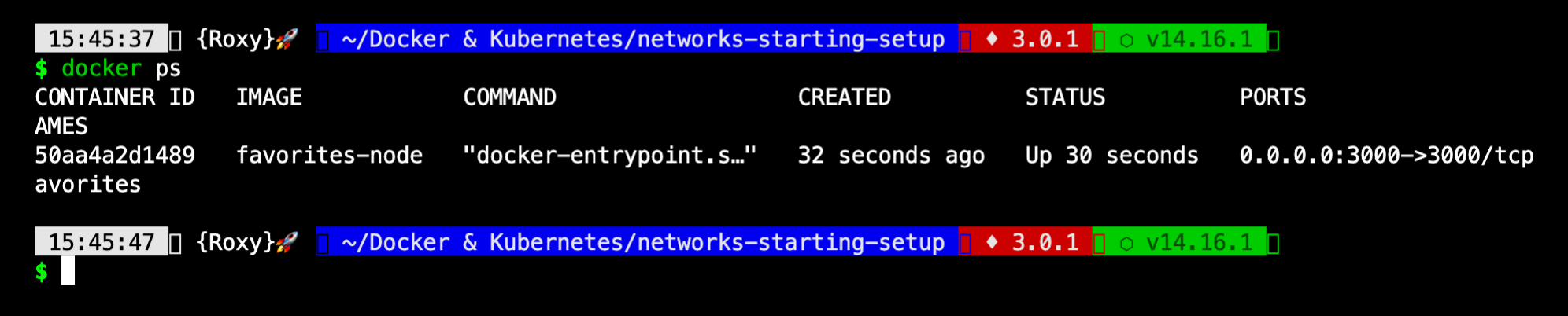 $ docker run --name favorites --rm -p 3000:3000 favorites-node