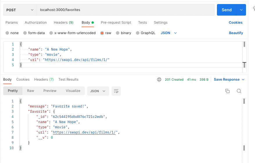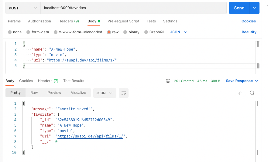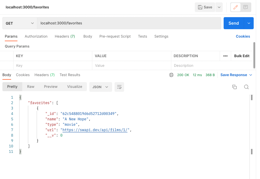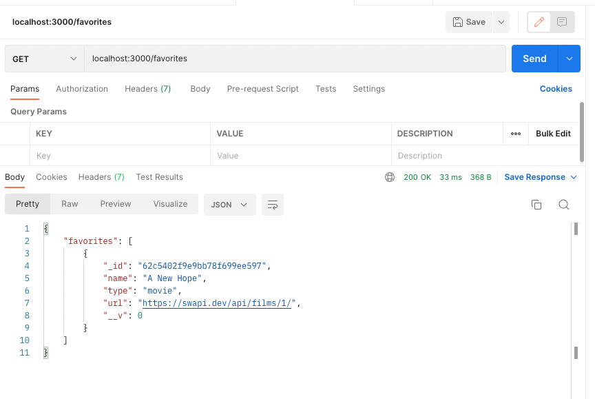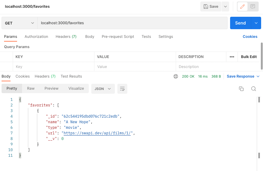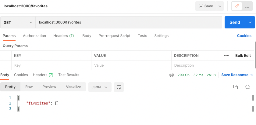 - GET localhost:3000/favorites을 요청했을 경우 정상 작동하는 것을 볼 수 있음