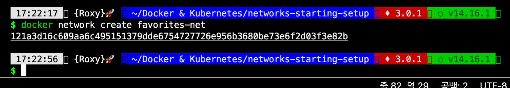 - 리빌드 후 방금 생성한 네트워크에 포함하여 재실행
