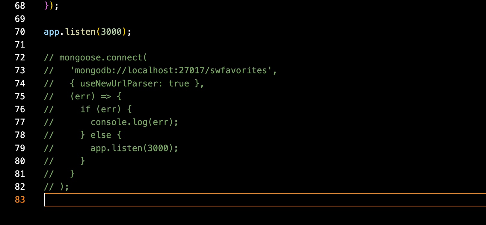 - GET localhost:3000/favorites을 요청했을 경우 완전히 새로운 데이터베이스에 액세스한 것을 알 수 있음