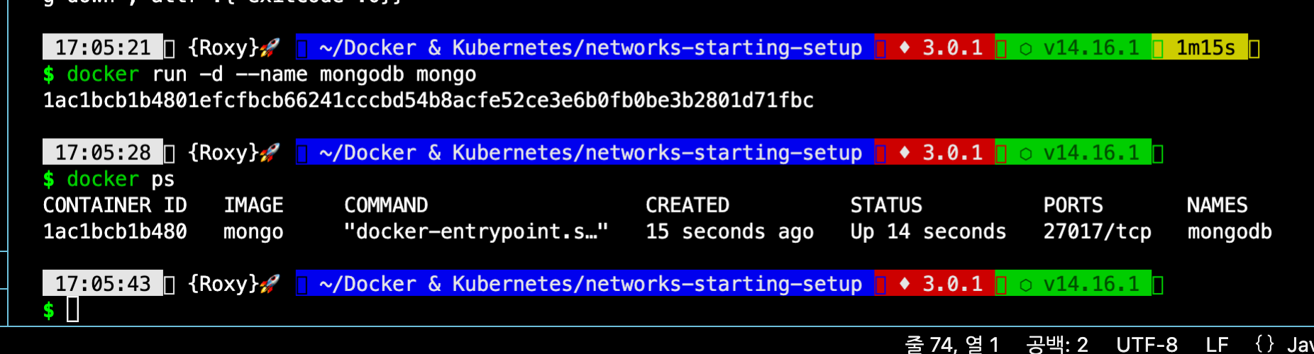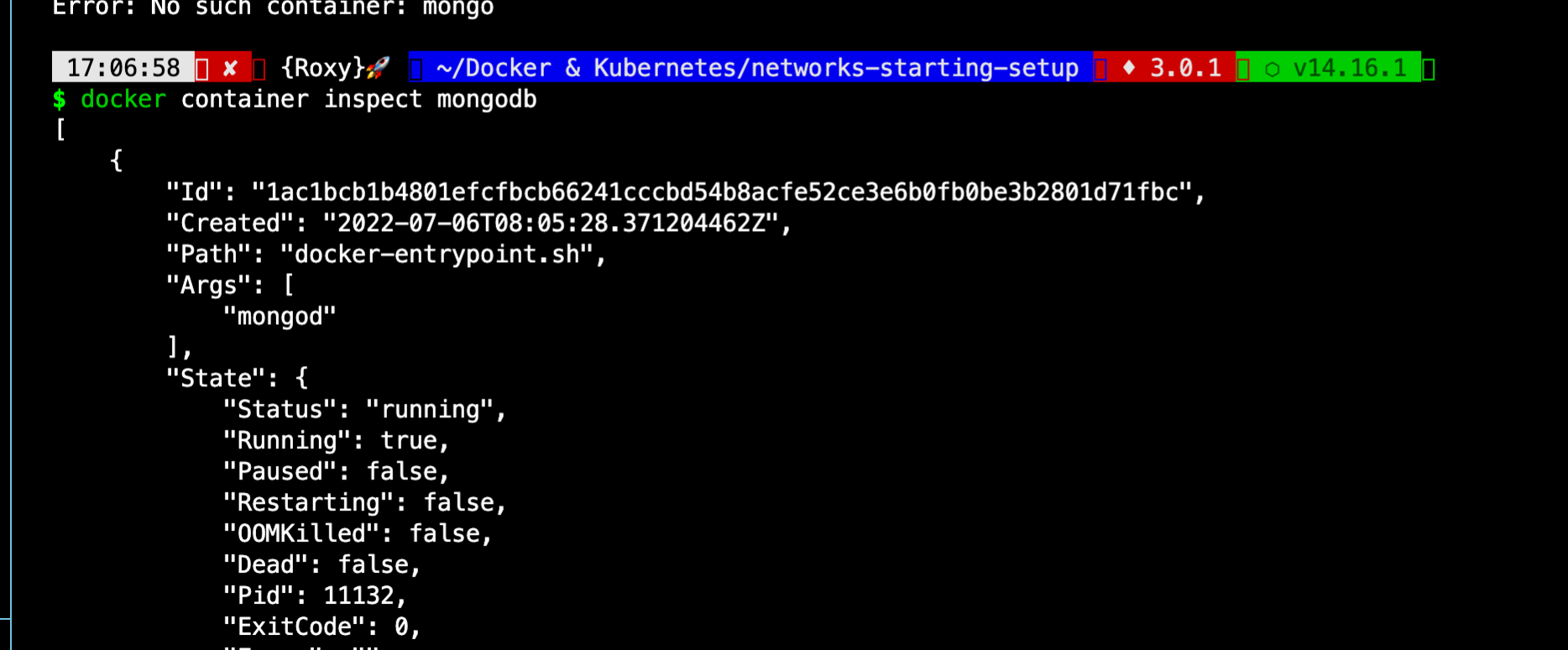 - 즉 로컬 호스트 컴퓨터의 mongodb가 아닌 같은 네트워크에서 실행중인 컨테이너의 데이터베이스에 액세스 했음