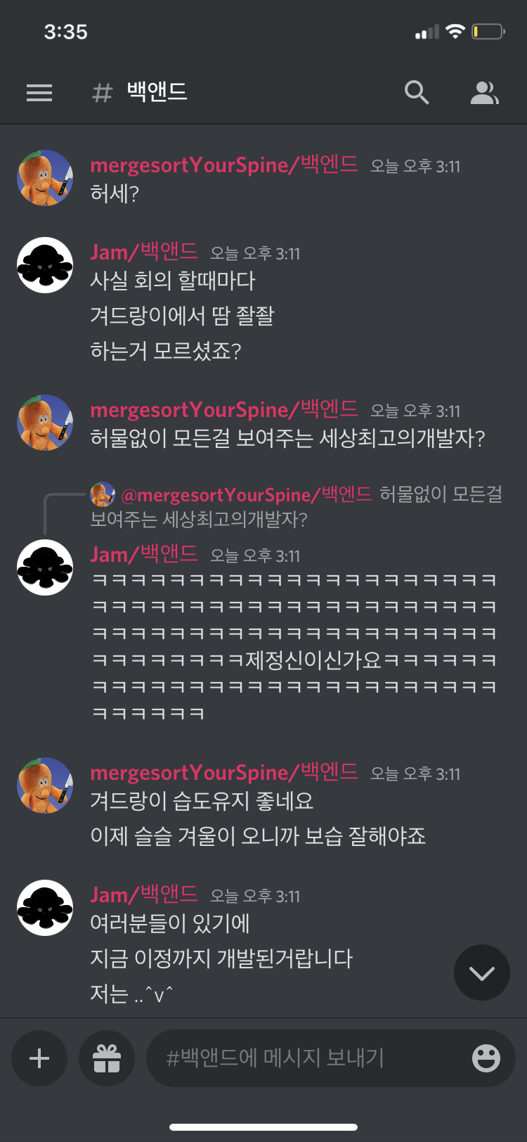 그리고 그 과정에서 팀원들이랑, 특히 백엔드 팀원들이랑 많이 친해졌다.