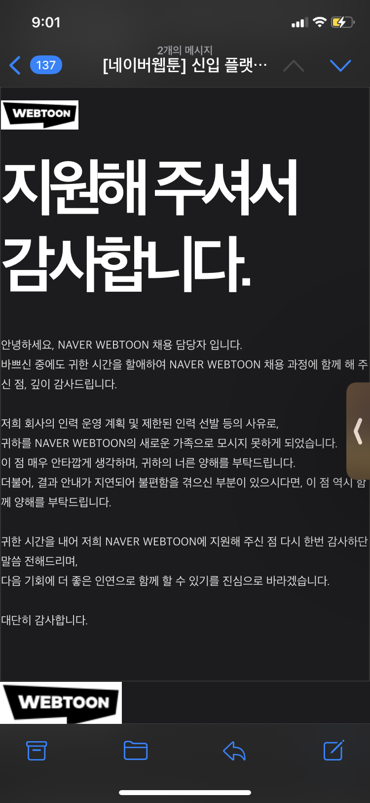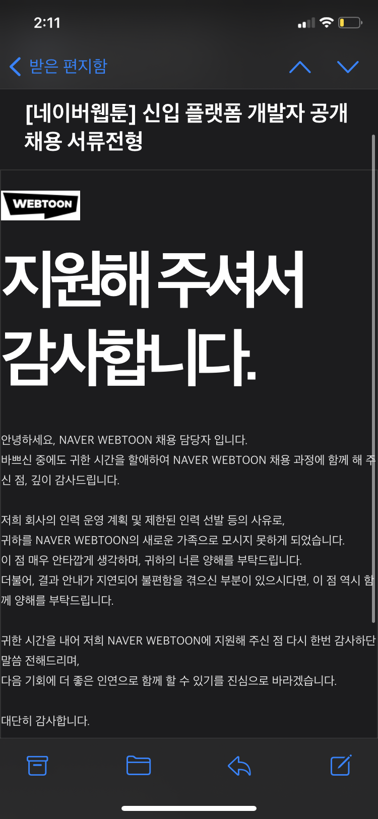 이 때 열과 성을 다해서 썼던 네이버 웹툰 서류에 탈락하고, SK C&C 코테에서 1문제도 제대로 풀지 못하면서 멘탈이 나갔던 탓일 것이다.