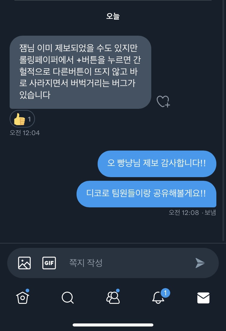 개발자가 아닌 친구들은 대부분 "서비스가 귀엽다~ 재밌다" 이런 긍정적인 피드백을 해주었고, 개발자인 분들은 아무래도 좀 더 QA 다운 피드백을 해주셨다.
