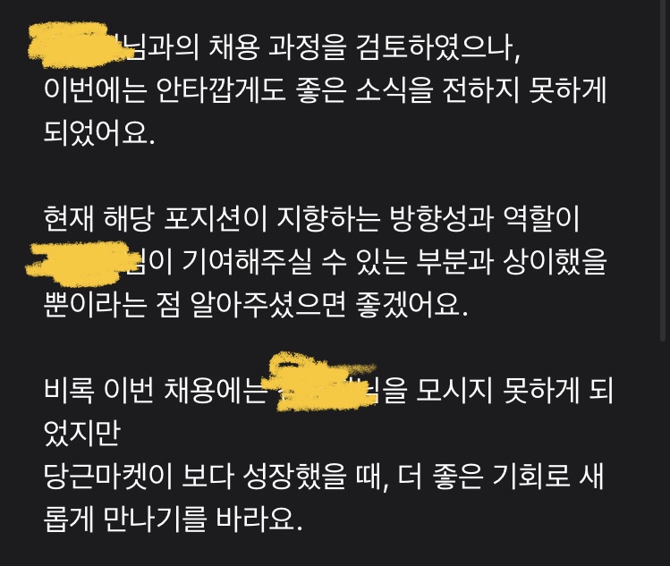 위에서 언급해서 예상했겠지만, 나는 당근마켓에서 탈락했다 ..^_ㅠ