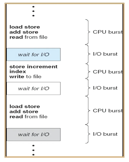 3. I/O burts: CPU에 의하지 않고 일어나는 작업의 부분(I/O execution)