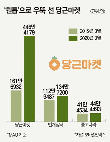 2020년 3월 기준 실질적인 이용자는 당근마켓이 훨~~~~~~~~~씬 많다!!!