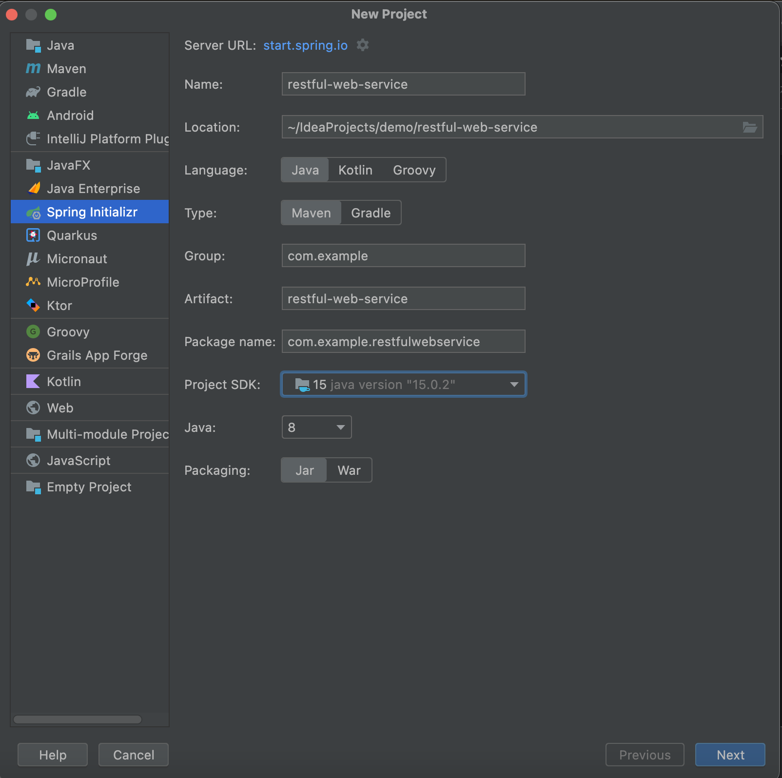 - packaging (개발이 끝나고 패키징 되는 형식): Jar