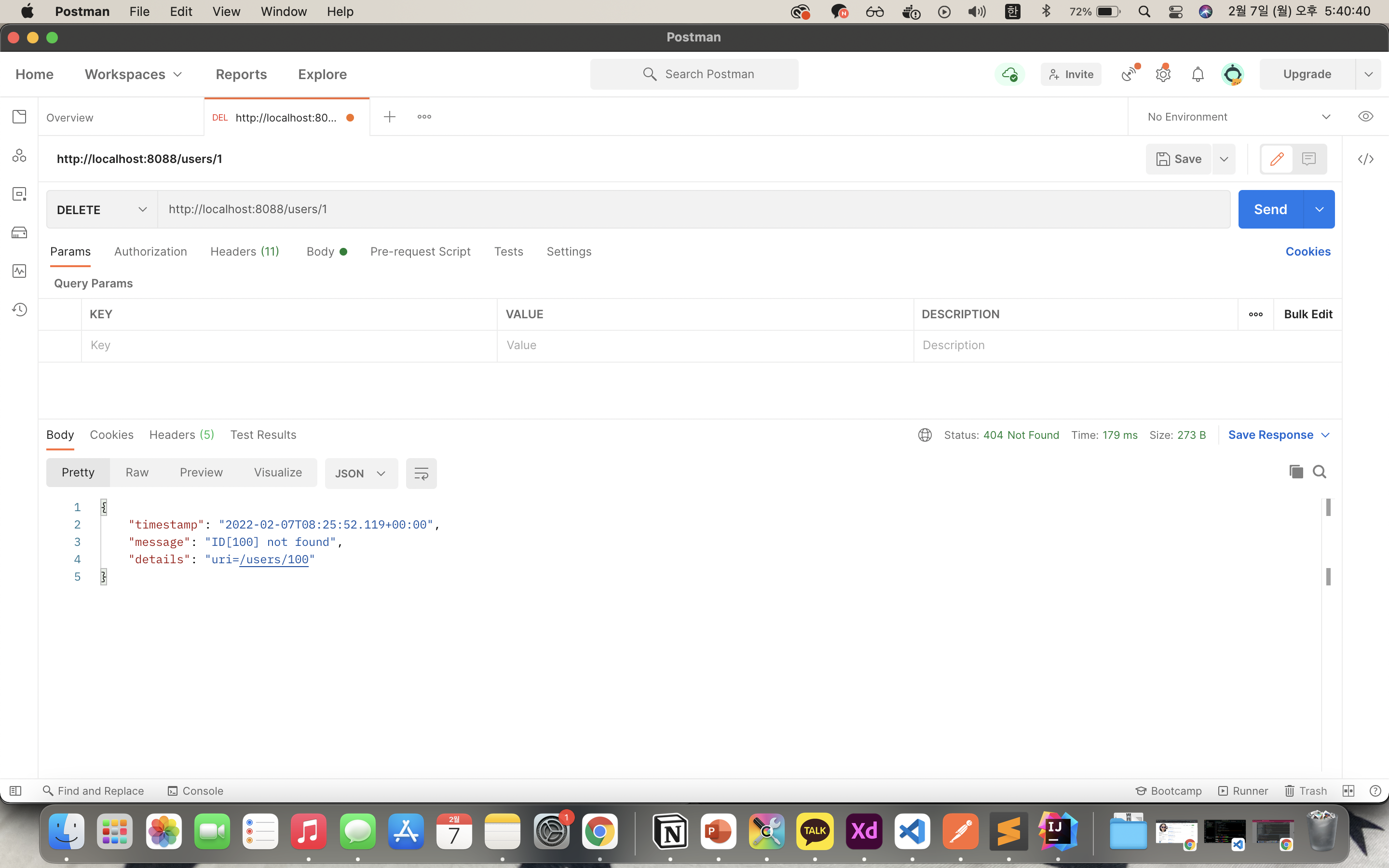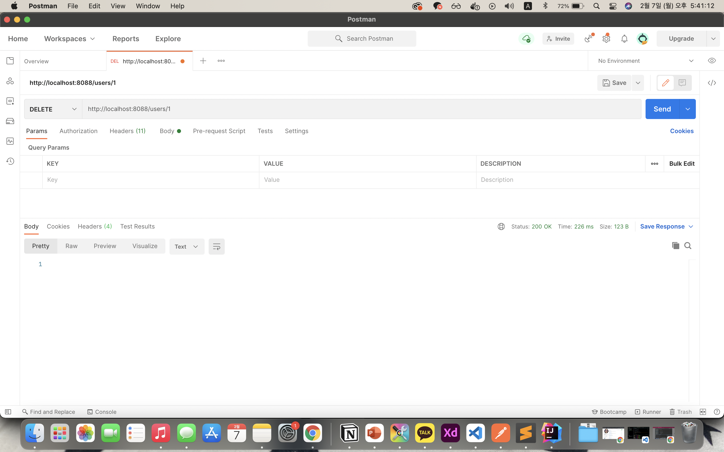 - @DeleteMapping 어노테이션을 추가하여 HTTP DELTE method 호출