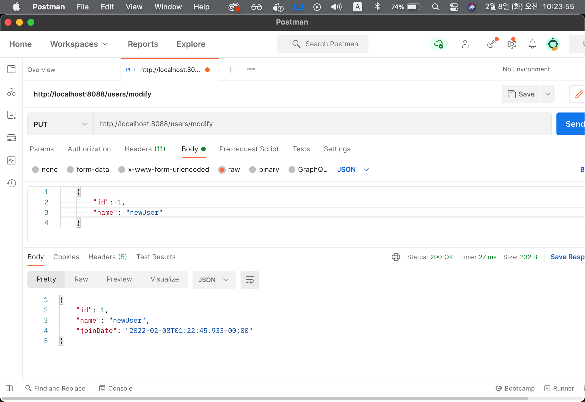 - @PutMapping 어노테이션을 추가하여 HTTP PUT method 호출