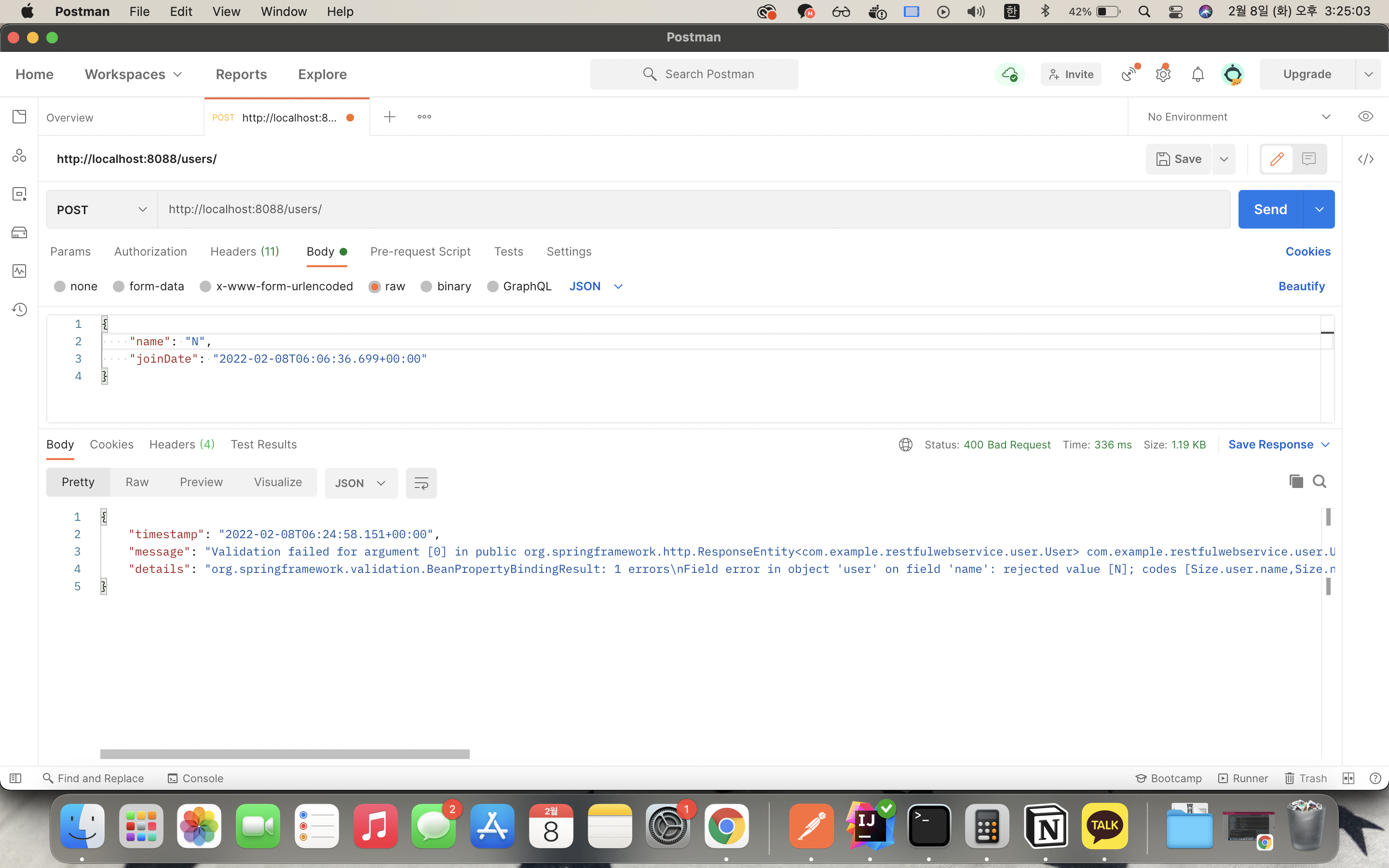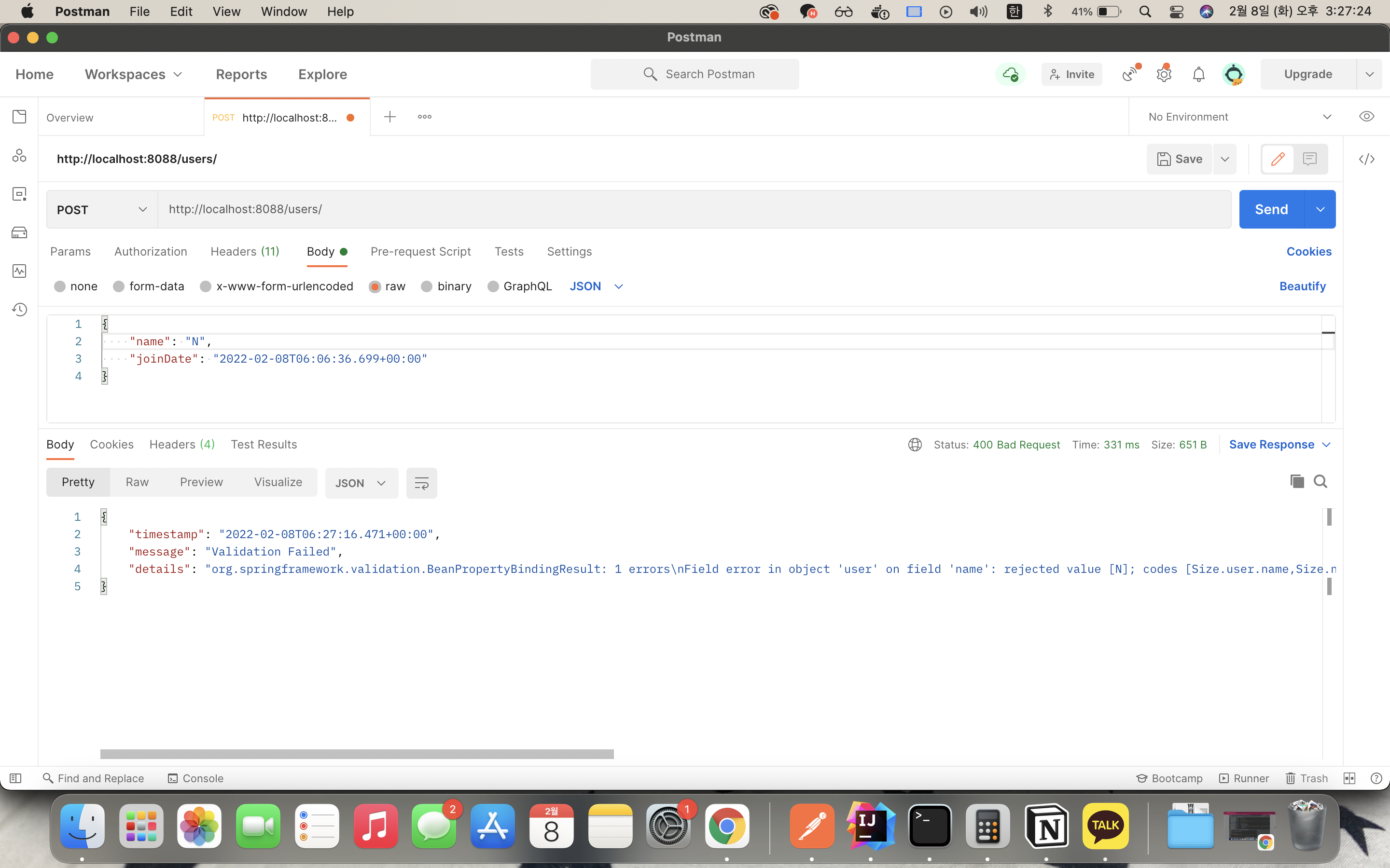 - UserController 클래스의 매개변수에 @Valid 어노테이션 추가