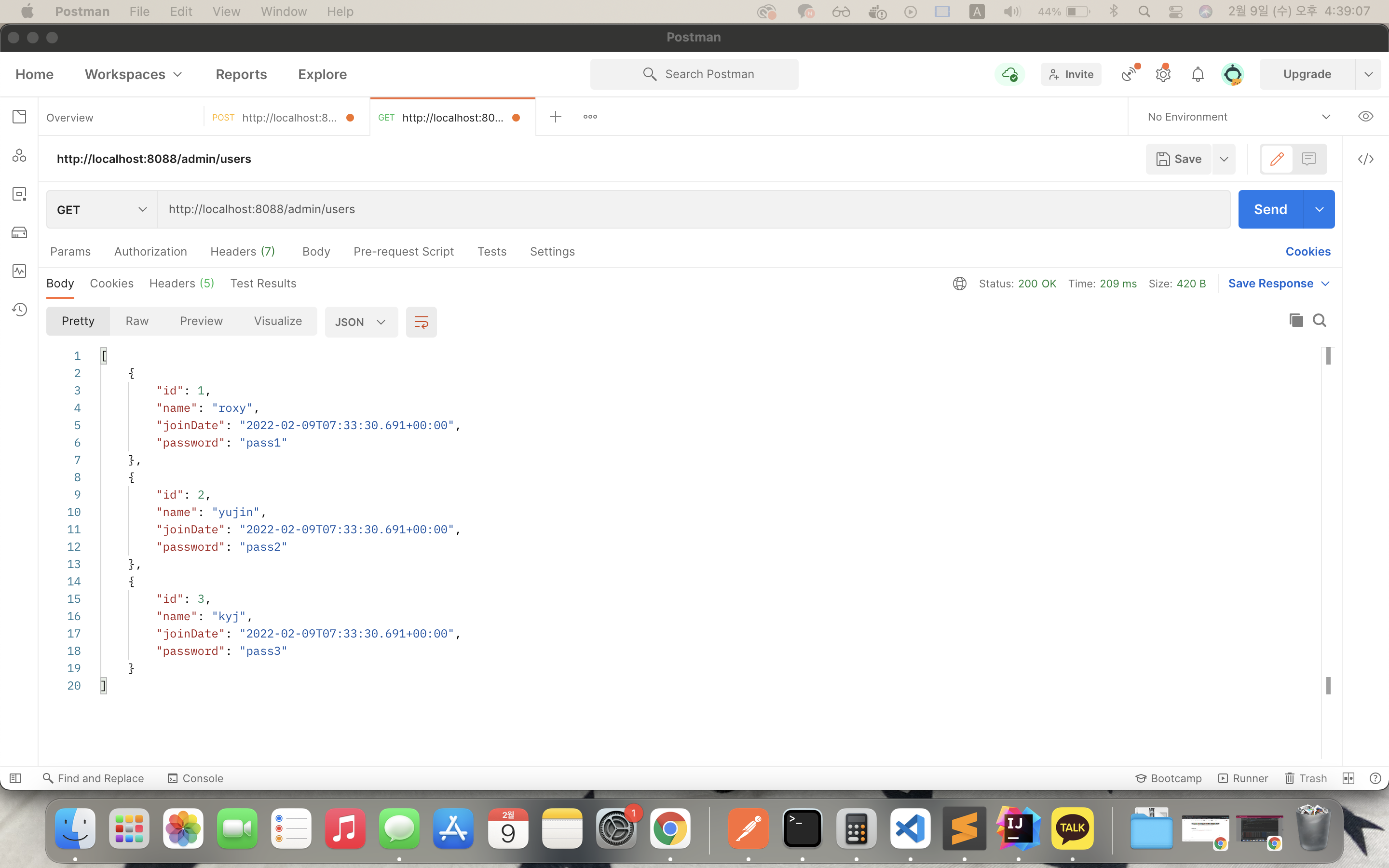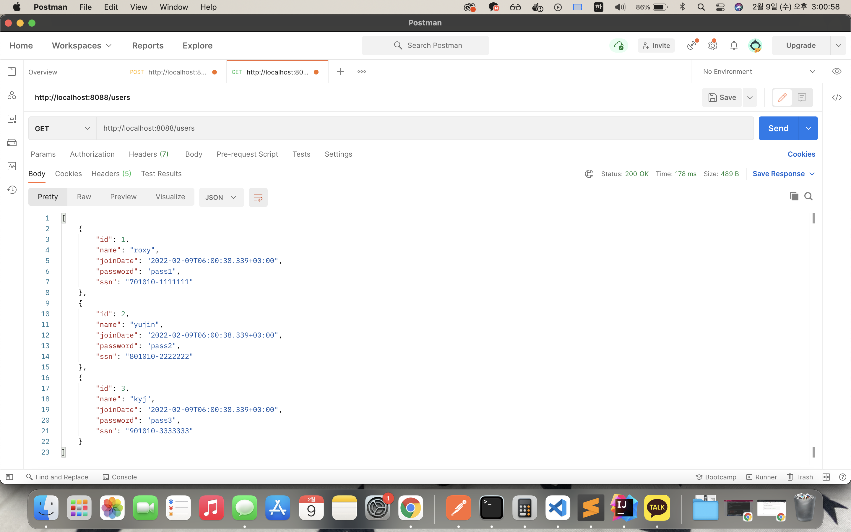 users.add(new User(2, "yujin", new Date(), "pass2", "801010-2222222"));