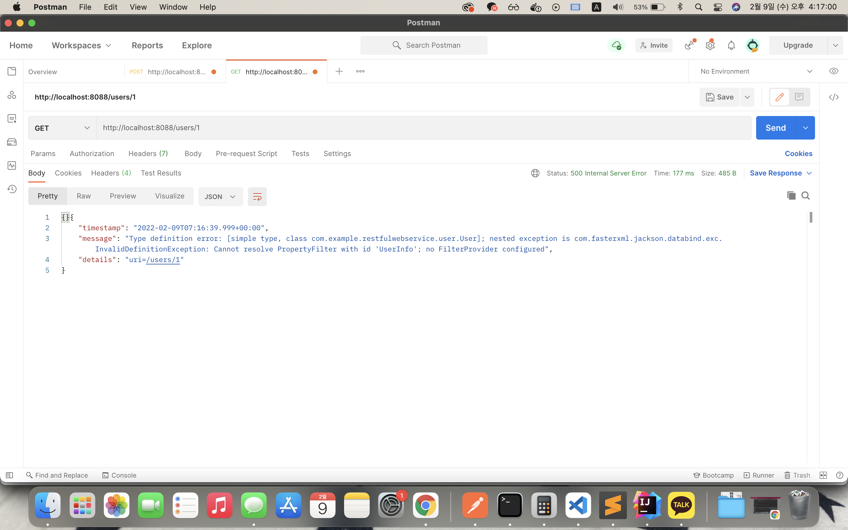 public MappingJacksonValue retrieveUser(@PathVariable int id){ //path variable을 사용하고 있기 때문에 @PathVariable 사용
