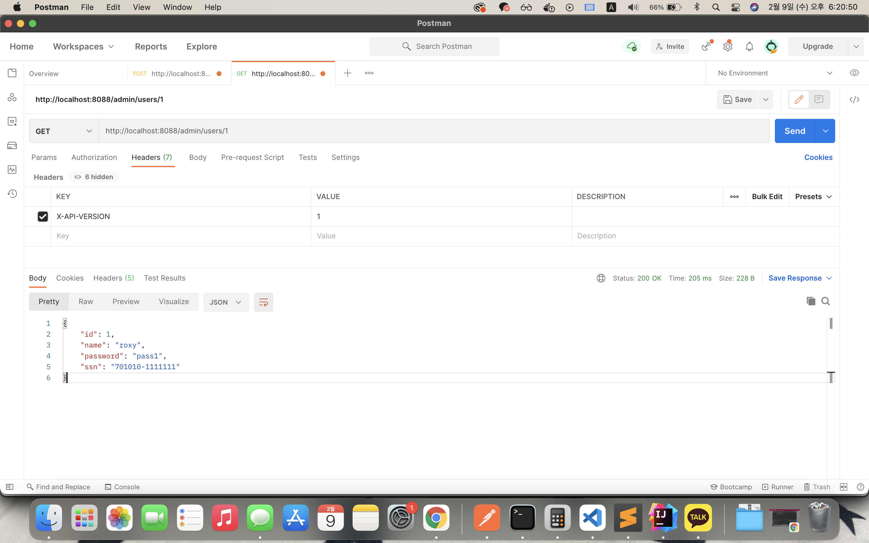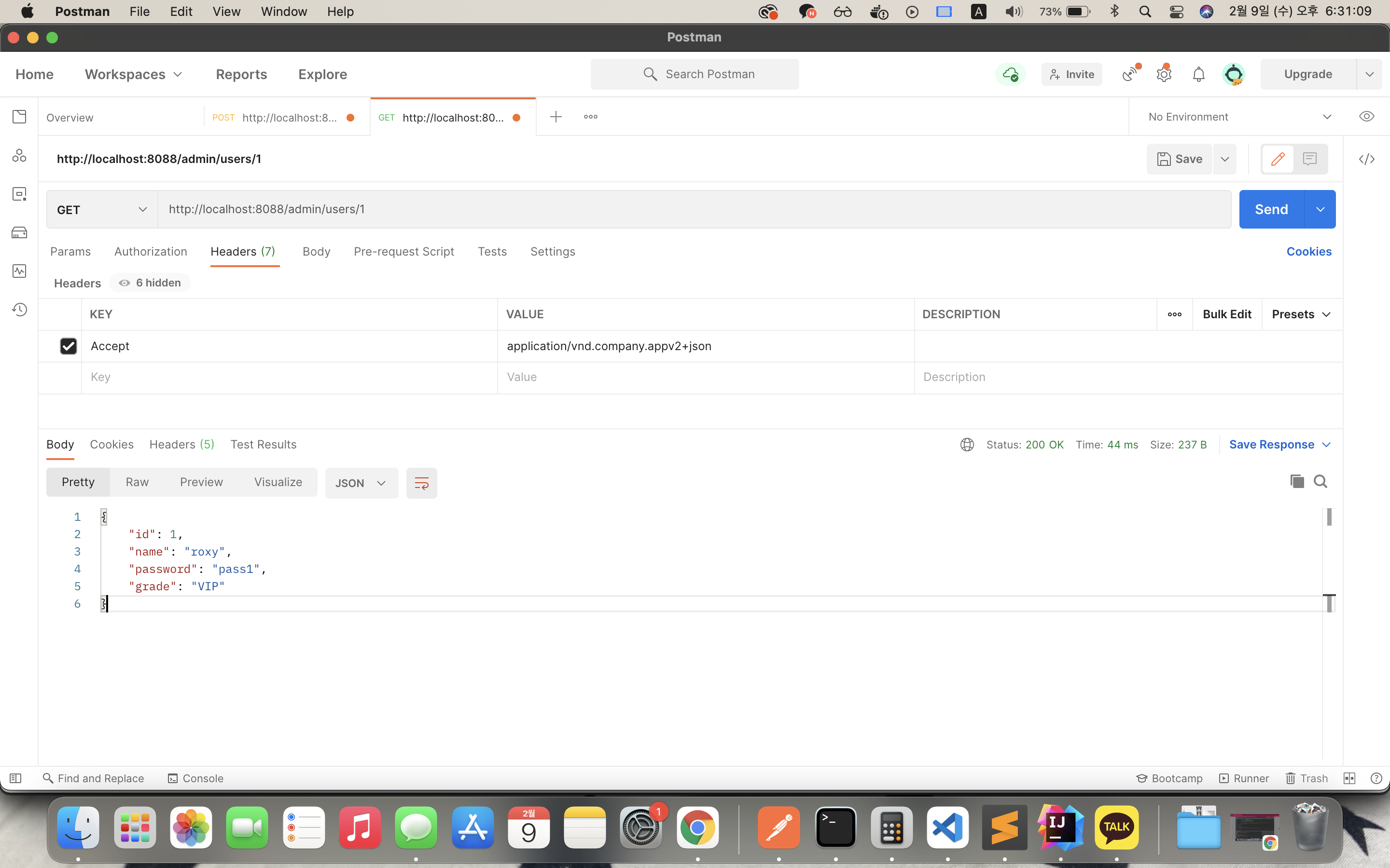 - @GetMapping(value="URI", params = "version=1")를 주석처리하고 @GetMapping(value="URI", headers = "X-API-VERSION=1")을 작성 (version2 메소드에도 버전에 맞게 작성)
