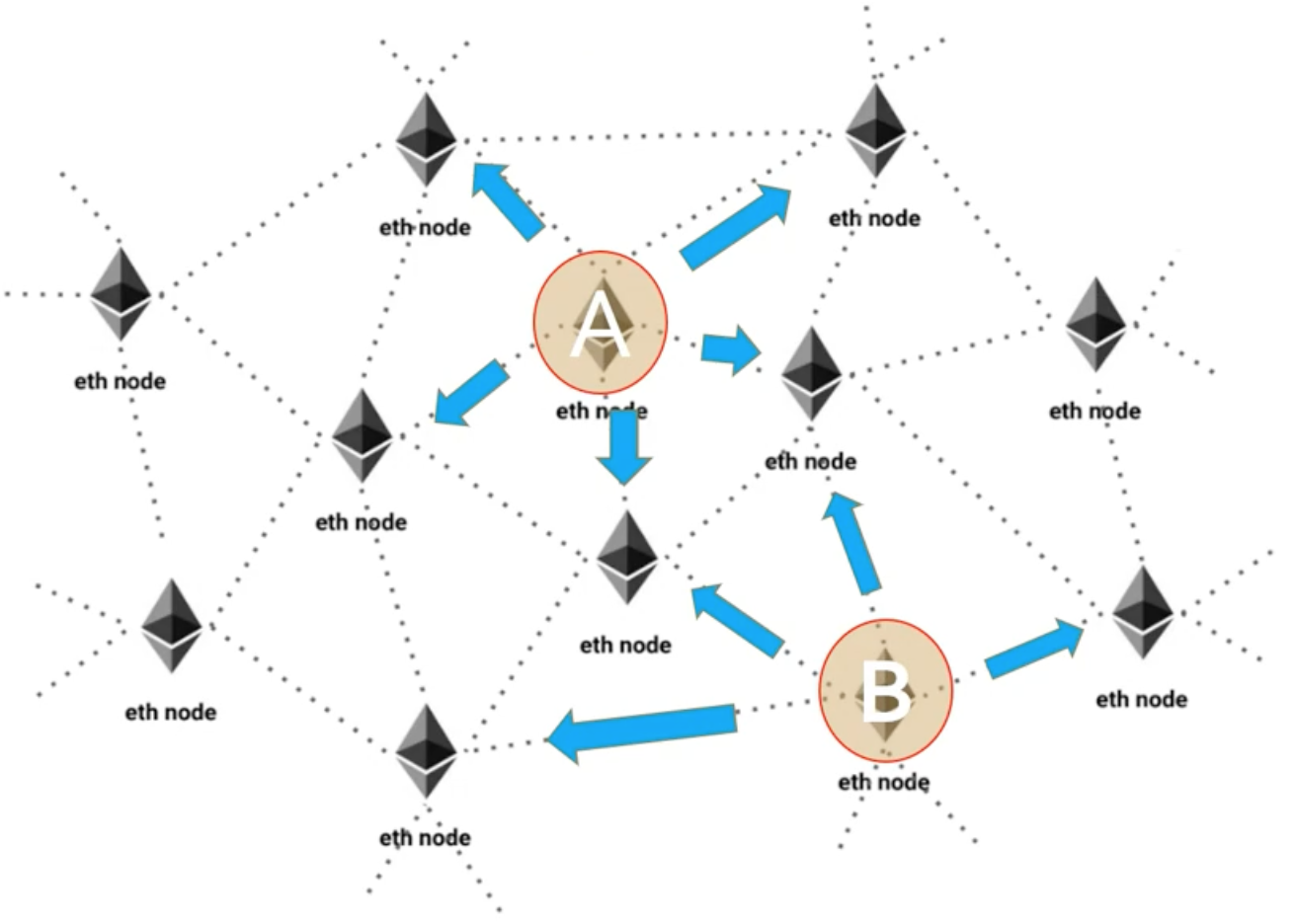 - 마이닝 노드가 누가 될지 모르기 때문에 최대한 많은 노드들에게 붙어야 함