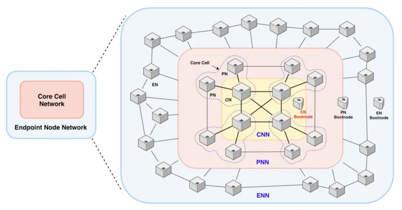 - core cell을 둘러싸는 Endpoint Node Network가 있음