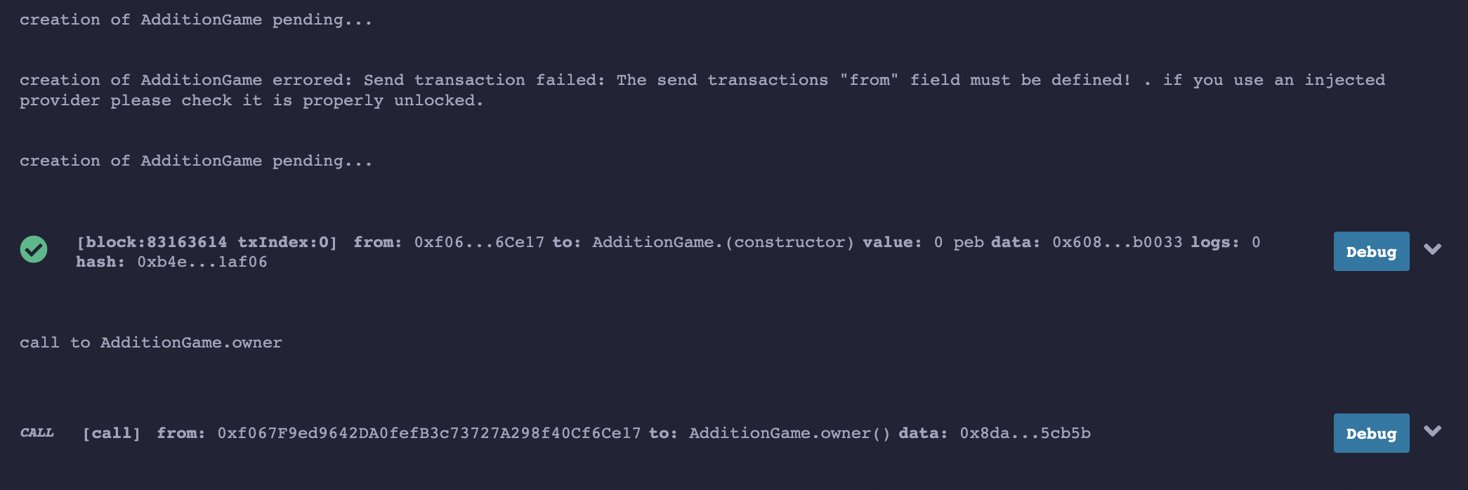 - ADDITIONGAME이라는 스마트 컨트랙트가 맺어진 것 확인하기
