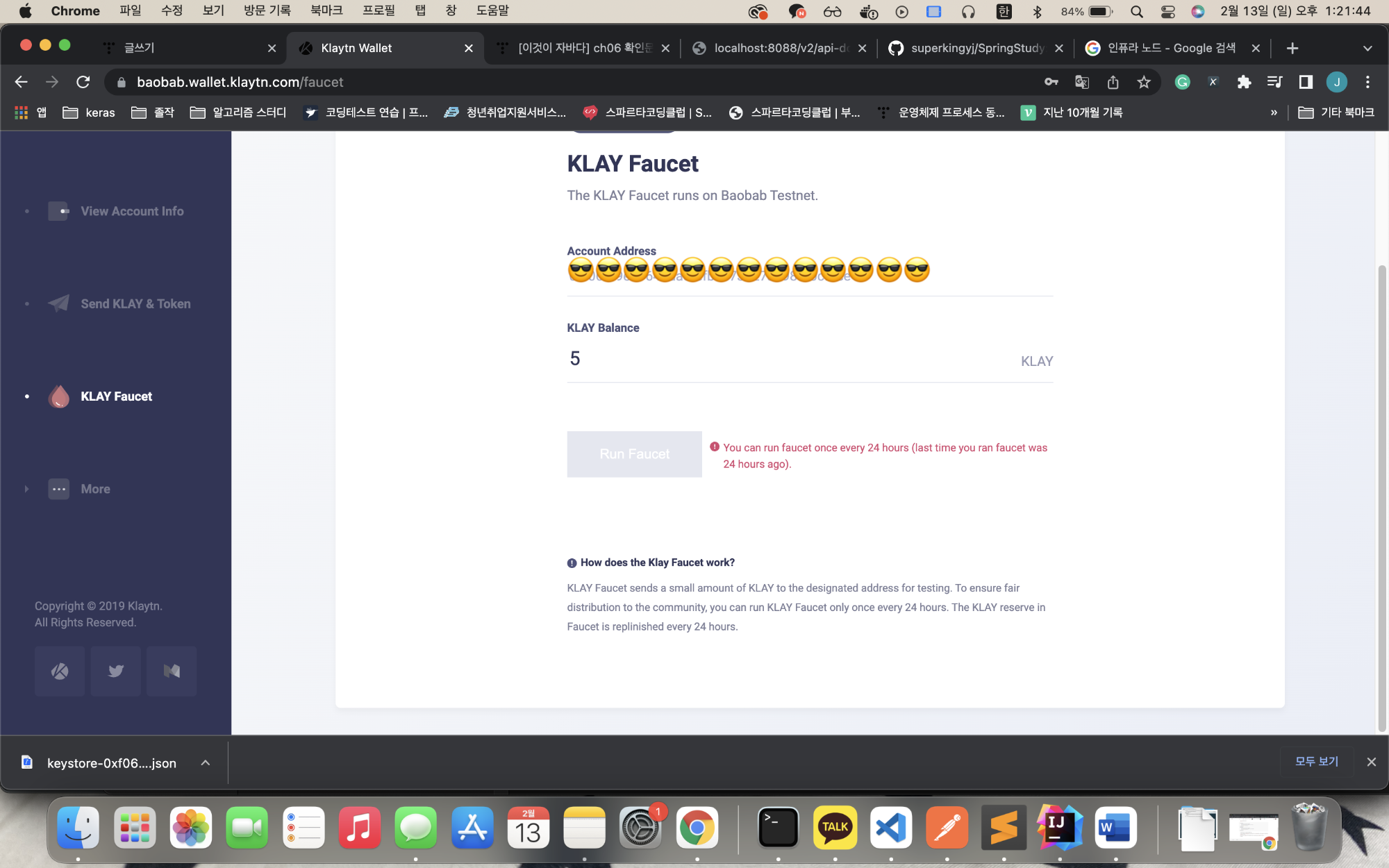- KLAY Faucet을 사용하여 5 KLAY 받기