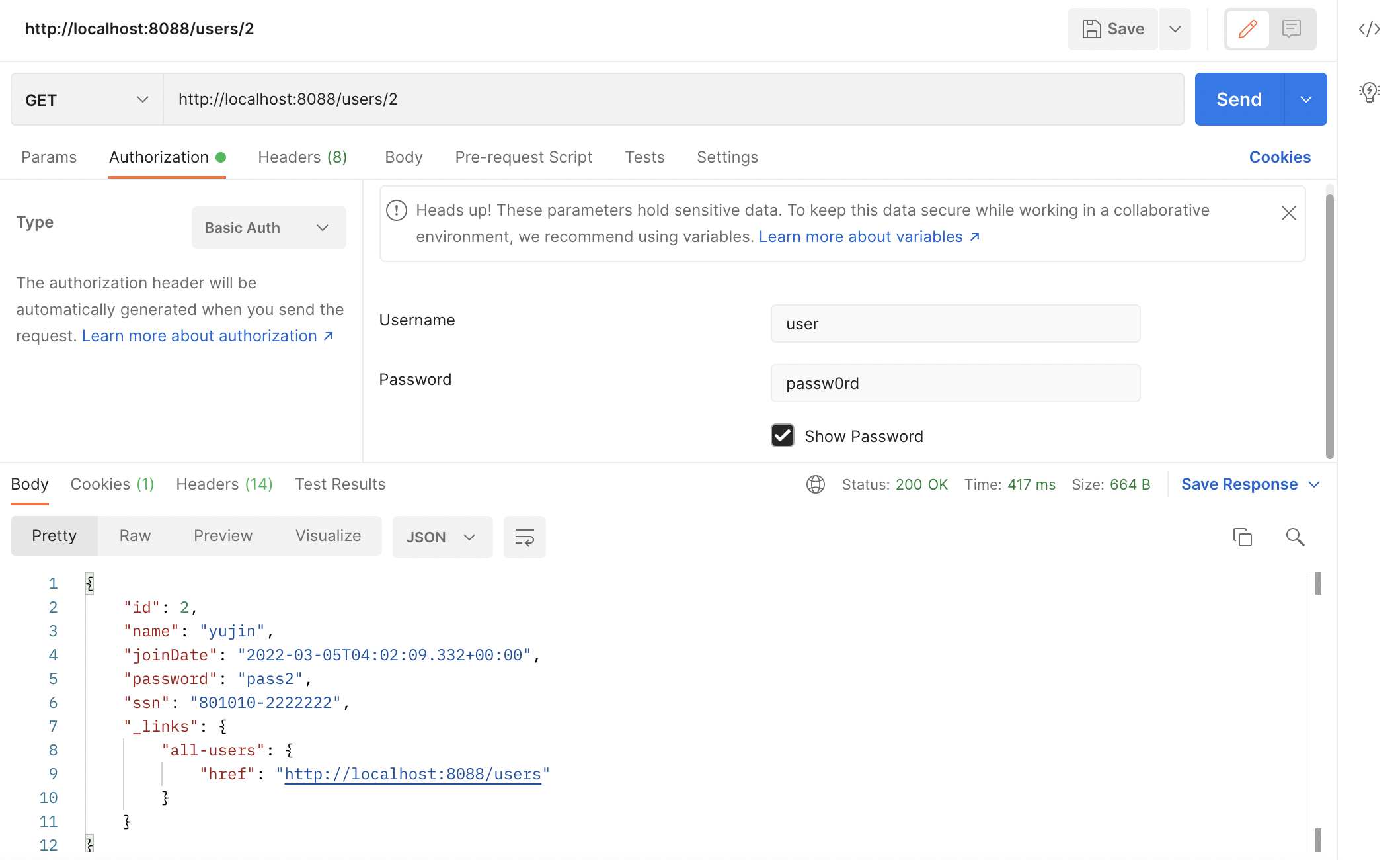 .password("{noop}test1234") // {noop}를 붙이면 패스워드 플레인 텍스트 값을 인코딩 없이 사용할 수 있게 해줌